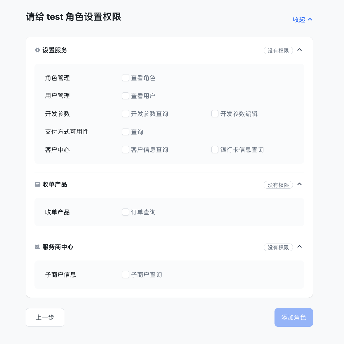 勾选角色所需权限后,点击添加角色,完成自定义角色的添加。