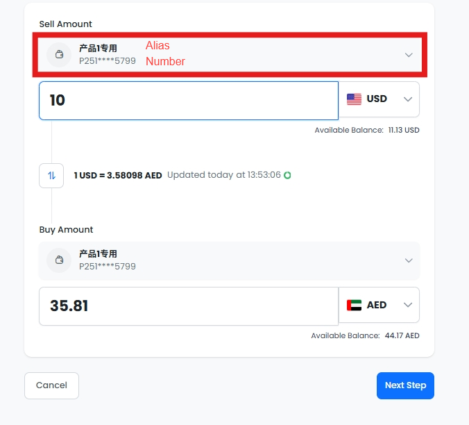 Through → , you can customize the alias information (the alias will be displayed alongside the account wherever it appears on the merchant platform to help you identify the account).