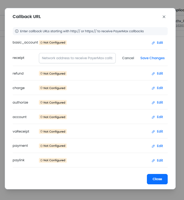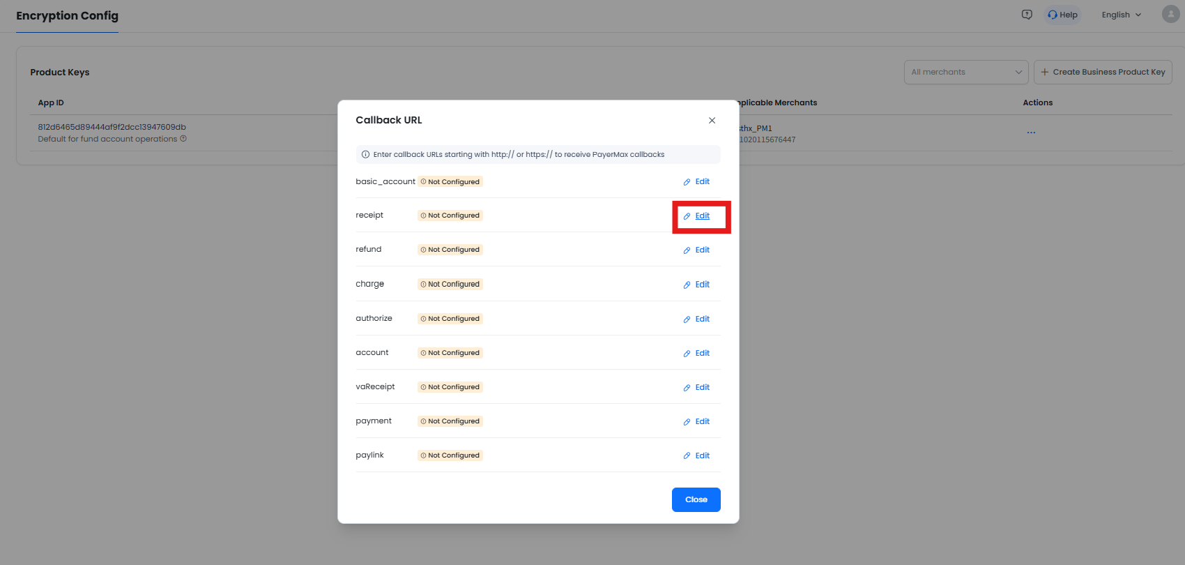 You can configure the required callback notification addresses for each key (if a callback address is provided in the API call, it will take precedence; if not, the configuration here will be used).