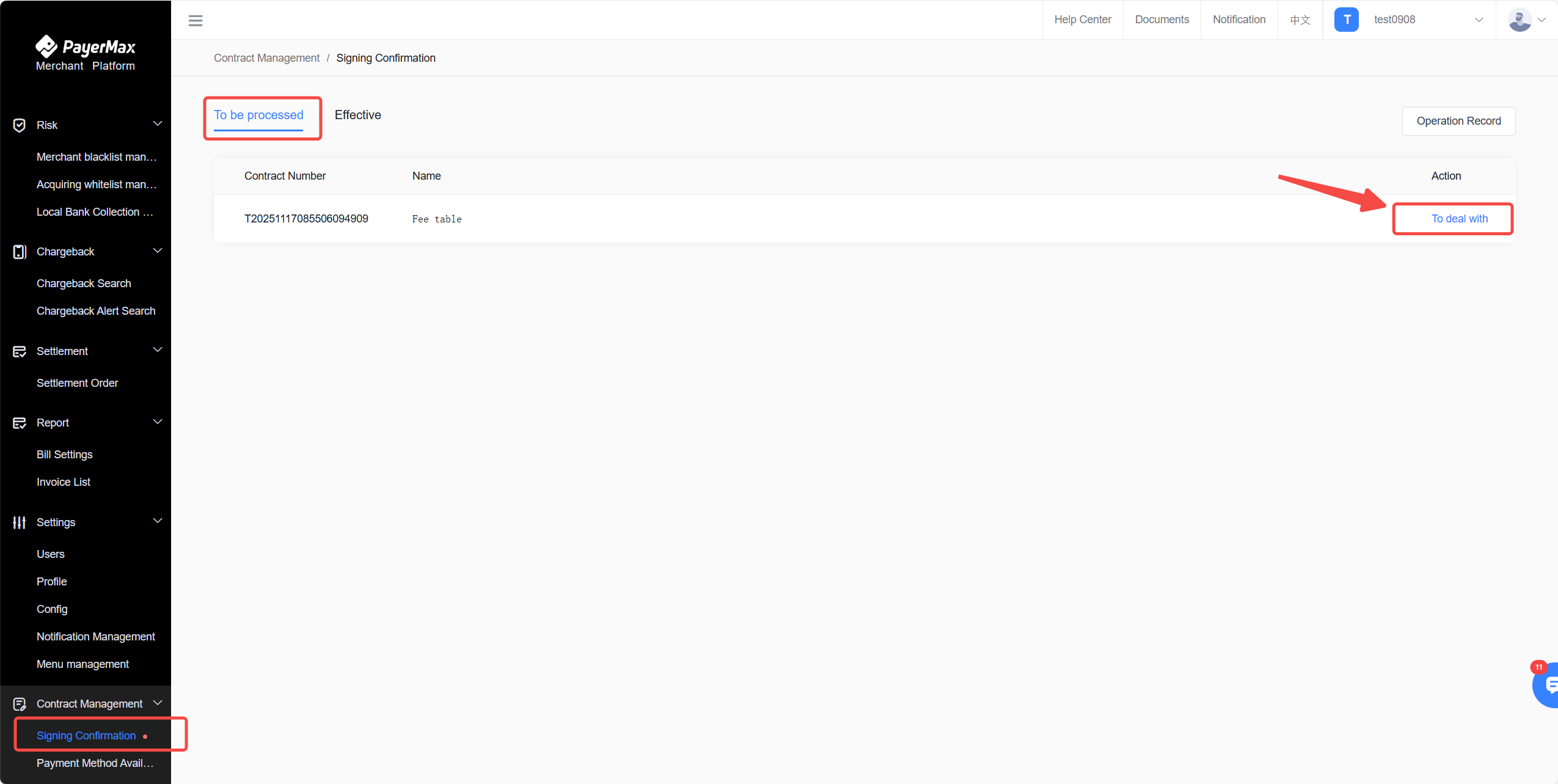 When PayerMax pushes the corresponding signing information to you, you will receive the message pop-up window in the lower right corner, click .
